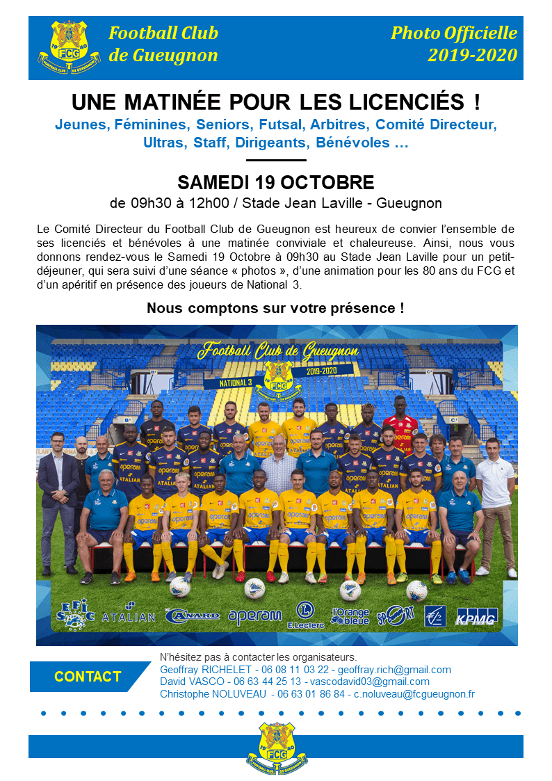 [Licenciés] Matinée FC Gueugnon : Réservez votre samedi 19 Octobre