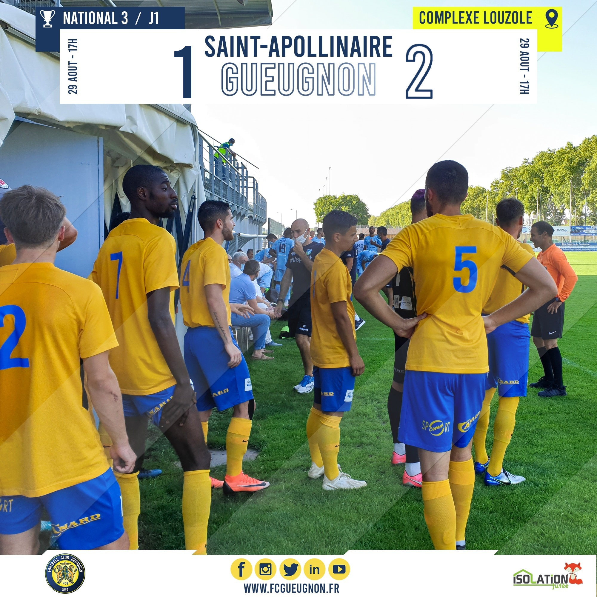 [N3 J01] ASC Saint Apollinaire 1–2 FC Gueugnon : Résultat