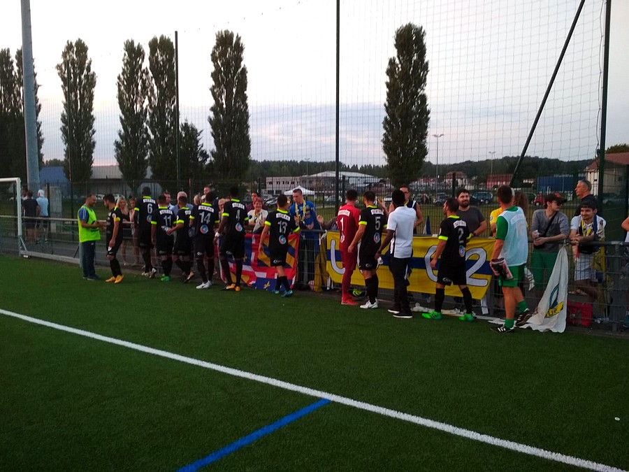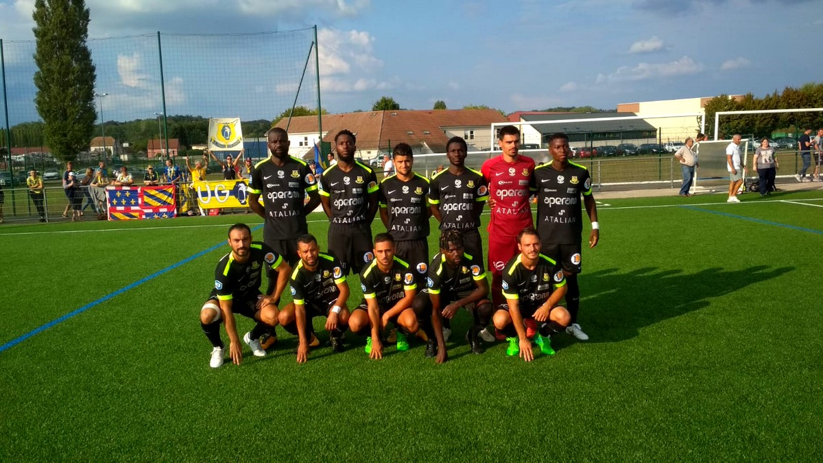 Fin de match et victoire des forgerons du FCGueugnon qui débutent leur saison de la meilleur des façons ! Les jaunes et bleus qui évoluent en tunique noir cette saison à l’extérieur ont fait la différence en première période grâce à des buts de Fabrice REVUELTA sur coup franc (25e) et Lamine SOUMAH d’un extérieur du pied (35e).