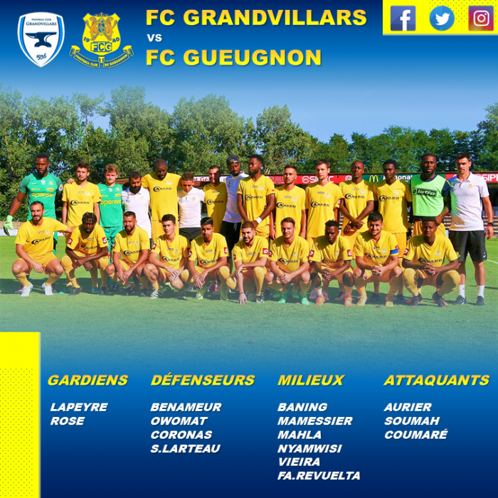 Le FC GRANDVILLARS : En champion, Grandvillars a assuré le titre de R1 en l’emportant 5-0 à domicile face à Lons le Saunier et confirmé ainsi sa montée historique en N3 en devançant l’autre promu Morteau Montlebon. Les Grandvellais, issus d’un village de plus de 3 000 habitants avec ses 330 licenciés dans le département du Territoire de Belfort seront les premiers adversaires des gueugnonnais. Le coach Gérald PISANI confiait à L’Est Républicain : « Le FC Grandvillars ne cassera pas sa tirelire pour assurer son avenir. En effet, priorité au groupe en place a été donnée. On gardera la même ossature avec l’appui de trois ou quatre joueurs supplémentaires ». Payan (Sochaux) et Caretti (Saint-Vit) ont signé au club lors de l’intersaison. Pour le Président Sébastien RAYOT, l’ambition du club sera le maintien. Et le club ne pourra compter que sur 2 mutations, « problème » d’arbitrage oblige. Grandvillars a disputé cinq matchs amicaux : Match nul 1-1 à Hagental (R1) suivi d’un 2ème match plus compliqué à Vesoul avec une équipe fortement diminuée par les absences, soldé par une lourde défaite 5-0. Malgré une bonne réaction contre Strasbourg Pierrots Vauban (N3), Grandvillars devait encore s’incliner 2-0. Le dernier match amical s’est soldé par une défaite face à Hegenheim 2-1. Pour la saison 2017-2018 l’objectif de la saison était déjà le maintien ! La montée successive des 2 équipes séniors indique que ce sera une équipe surement difficile à manouevrer. Sébastien Rayot indiquait lors d’une dernière interview : « Il vaut mieux commencer par les « gros » du championnat et un bon résultat ne serait que du bonus ». Le FCG sait ce qui l’attend.