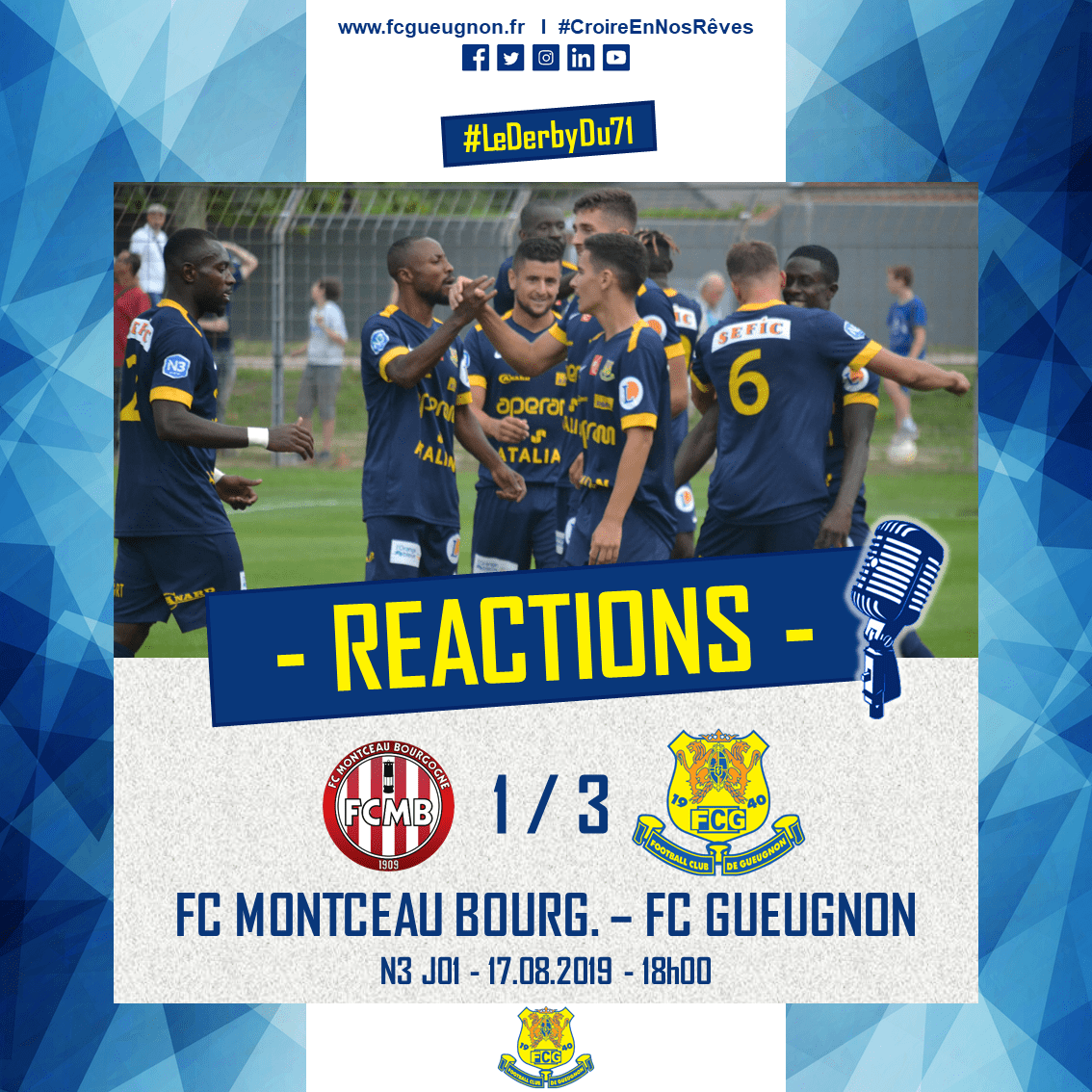 Retrouvez les réactions captées par Piero à l’issue de la victoire à Montceau lors de la 1ère journée de National 3 (1-3).