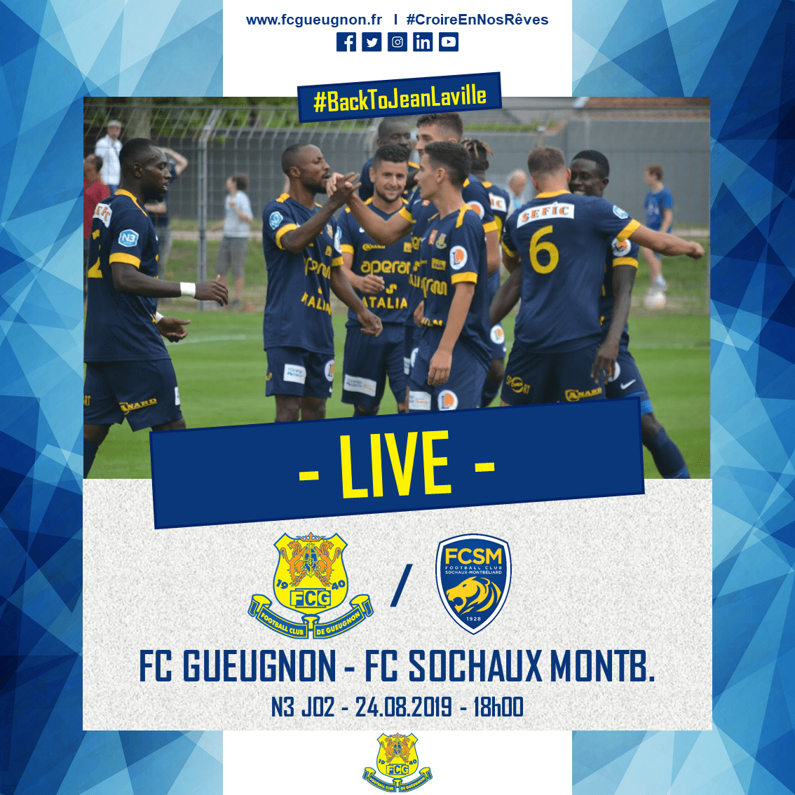 [N3 J02] FC Gueugnon – FC Sochaux B : Live