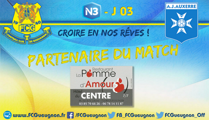 Ce samedi 03/09 à 18h, ce sont Marie Ruvio, Alain Lhermitte et Nicolas Santoliquido, propriétaires de l’Hôtel-Restaurant du Centre : la Pomme d’Amour qui offriront le ballon du match et donneront le coup d’envoi de ce premier match de National 3 à domicile pour nos forgerons !