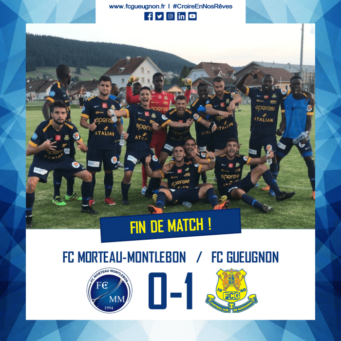 Le FC Gueugnon s’impose sur le terrain du FC Morteau-Montlebon et enchaîne par un 3ème succès en autant de matchs ! Franck Revuelta, unique buteur de la rencontre, permet à son équipe d’empocher les 3 points.