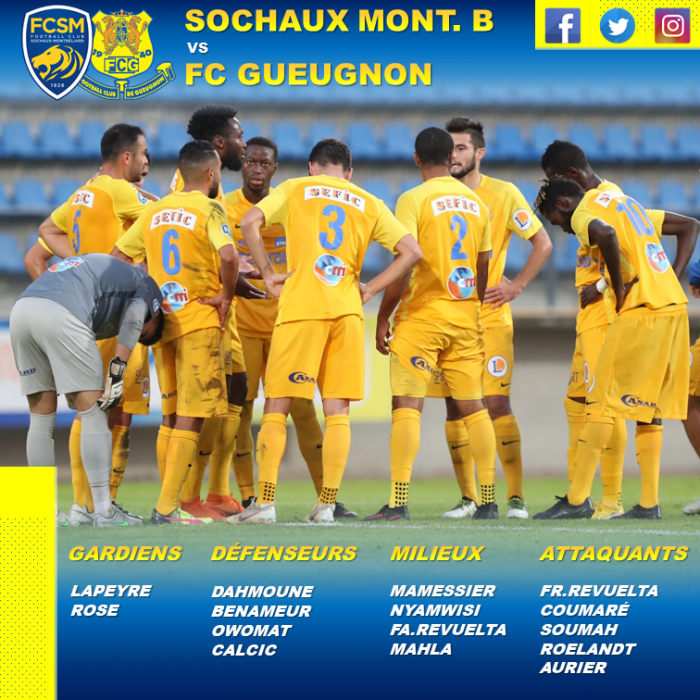 Le FC GUEUGNON s’est qualifié pour le 7ème tour de la Coupe de France et affrontera Clermont Foot, club de Ligue 2, dans deux semaines au stade Jean Laville. Une belle affiche en perspective pour le club et ses supporters. Mais pour l’heure il y a deux matchs importants à jouer en championnat et à bien négocier pour rester au contact du haut de tableau. Les deux fois face à des équipes réserves professionnelles, à Sochaux B tout d’abord puis à domicile face à Auxerre B. Pour défier les lionceaux sochaliens, Philippe CORREIA pourrait récupérer quelques joueurs qui étaient à l’infirmerie le week-end dernier. Ansi, Yves OWOMAT, Franck REVUELTA, Lamine SOUMAH et Albert BANING (de retour à l’entrainement), pourraient réintégrer le groupe. Steeven HARRISON sera suspendu pour cette rencontre de même que Romain CATENACCI qui purgera lui son second match. Clément CORONAS, sorti sur blessure à Saint-Apollinaire devrait être contraint de déclarer forfait. Mais le FCG a déjà montré qu’il pouvait compter sur tout un groupe soudé et de qualité !