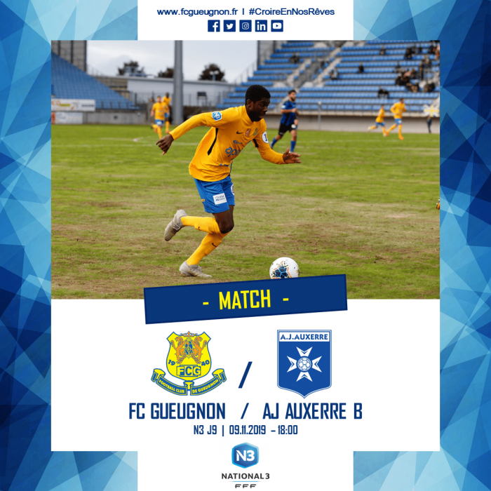 C’est l’affiche de cette 9ème journée de National 3 ! Le FC GUEUGNON accueille son dauphin l’AJ AUXERRE B pour un duel au sommet ce samedi 9 novembre à 18h.