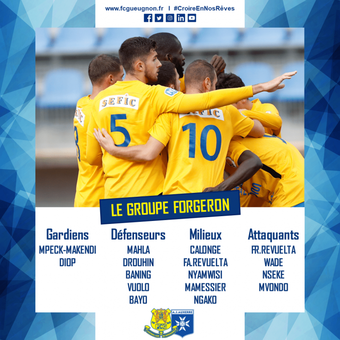 Le FC GUEUGNON avait connu un coup d’arrêt en Coupe de France en s’inclinant lors du 6ème tour face au Racing Besançon. Mais cette défaite n’a pas mis le doute dans le camp gueugnonnais et les forgerons ont vite rebondit en championnat avec une victoire sans appel sur le terrain de Valdahon-Vercel (0-3). Avec huit victoires en autant de matchs, ils ont conforté leur première place au classement et creusé l’écart avec la troisième place. L’AJ Auxerre se pose aujourd’hui peut-être comme le principal adversaire du FCG cette saison en ne pointant qu’à quatre longueurs. Les Gueugnonnais vont retrouver leur pelouse de Jean Laville ce samedi pour cette belle affiche qui devrait attirer du monde dans les tribunes. Avec l’appui de leurs supporters, ils tenteront de maintenir à distance leur adversaire du soir.