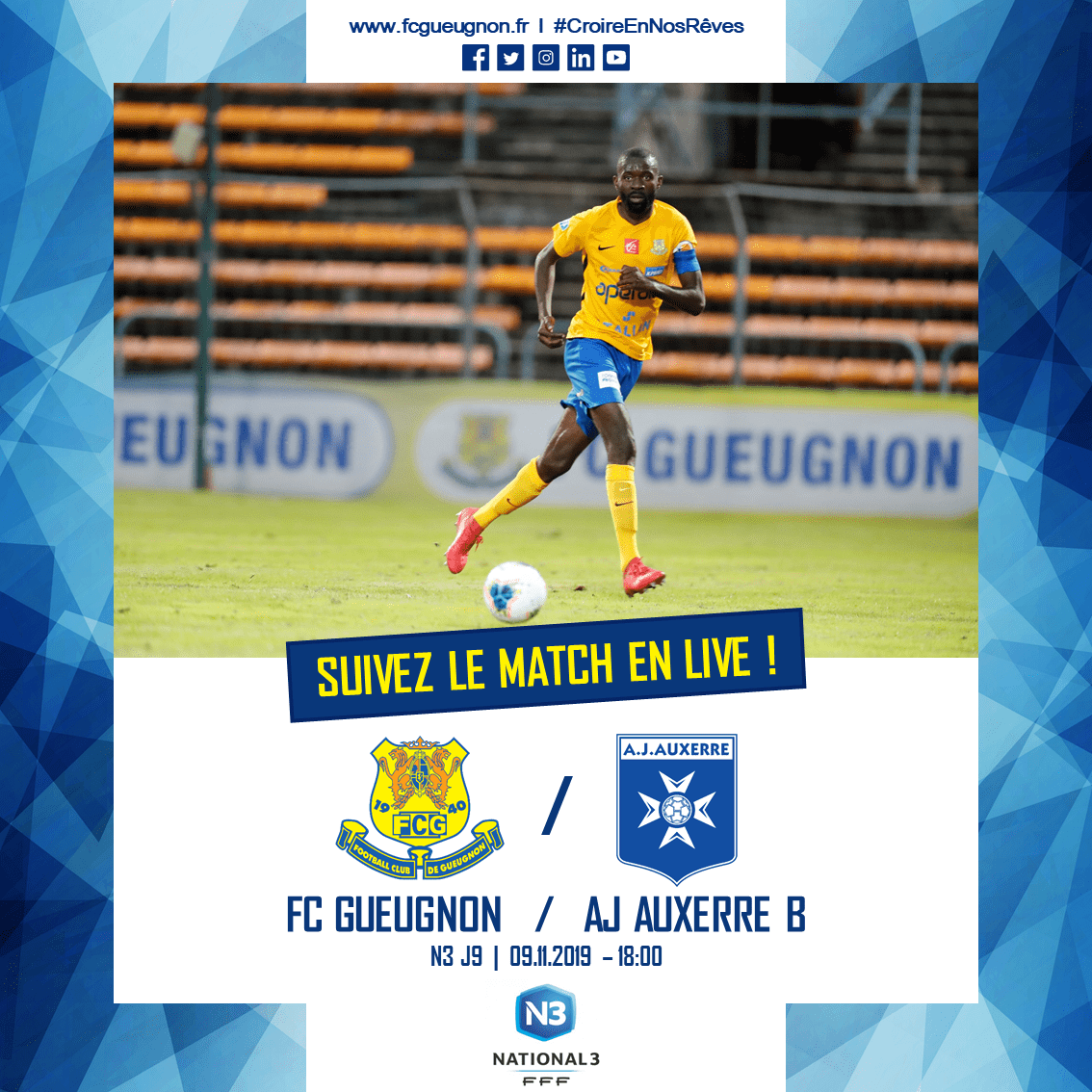 >> Live N3 J09 – FC Gueugnon v/s AJ Auxerre B : http://bit.ly/N3J09ajaB1920