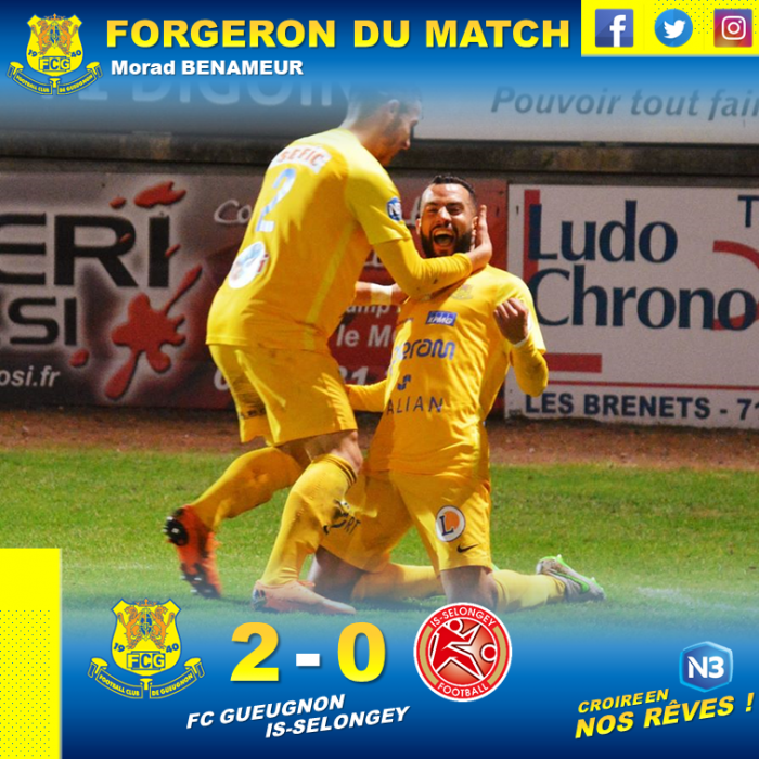 Bravo à Morad BENAMEUR, passeur et buteur que vous avez désigné forgeron du match contre Is-Selongey