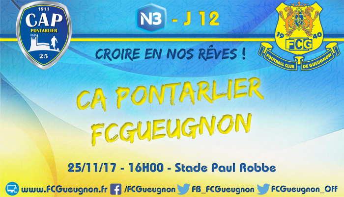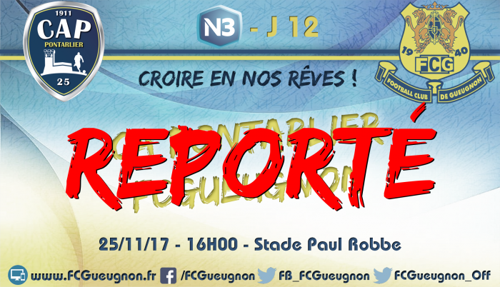 (MAJ le 25/11/2017 à 10h00) : En raison des conditions climatiques et de la neige, la rencontre de N3 chez le CA Pontarlier est reportée