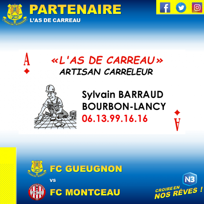 Habitué et supporter fidèle, Sylvain BARRAUD et son entreprise « L’As de Carreau » offrira le ballon du match ce samedi à l’occasion de la 13ème journée de National 3 face au FC Montceau-Bourgogne ! C’est son fils, Valentin, licencié U7 au FC Gueugnon qui donnera le coup d’envoi fictif pour #LeDerbyDu71.