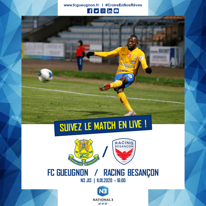 pour suivre cette 13ème journée de N3 BFC entre le FC Gueugnon et le Racing Besançon