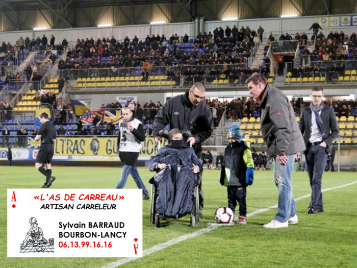 Habitué et supporter fidèle, Sylvain BARRAUD et son entreprise « L’As de Carreau » ont offert le ballon du match ce samedi à l’occasion de la 13ème journée de National 3 face au FC Montceau-Bourgogne. C’est son fils, Valentin, licencié U7 au FC Gueugnon qui a donné le coup d’envoi de la rencontre, accompagné de Yanis et son association (Des étoiles pour Yanis).