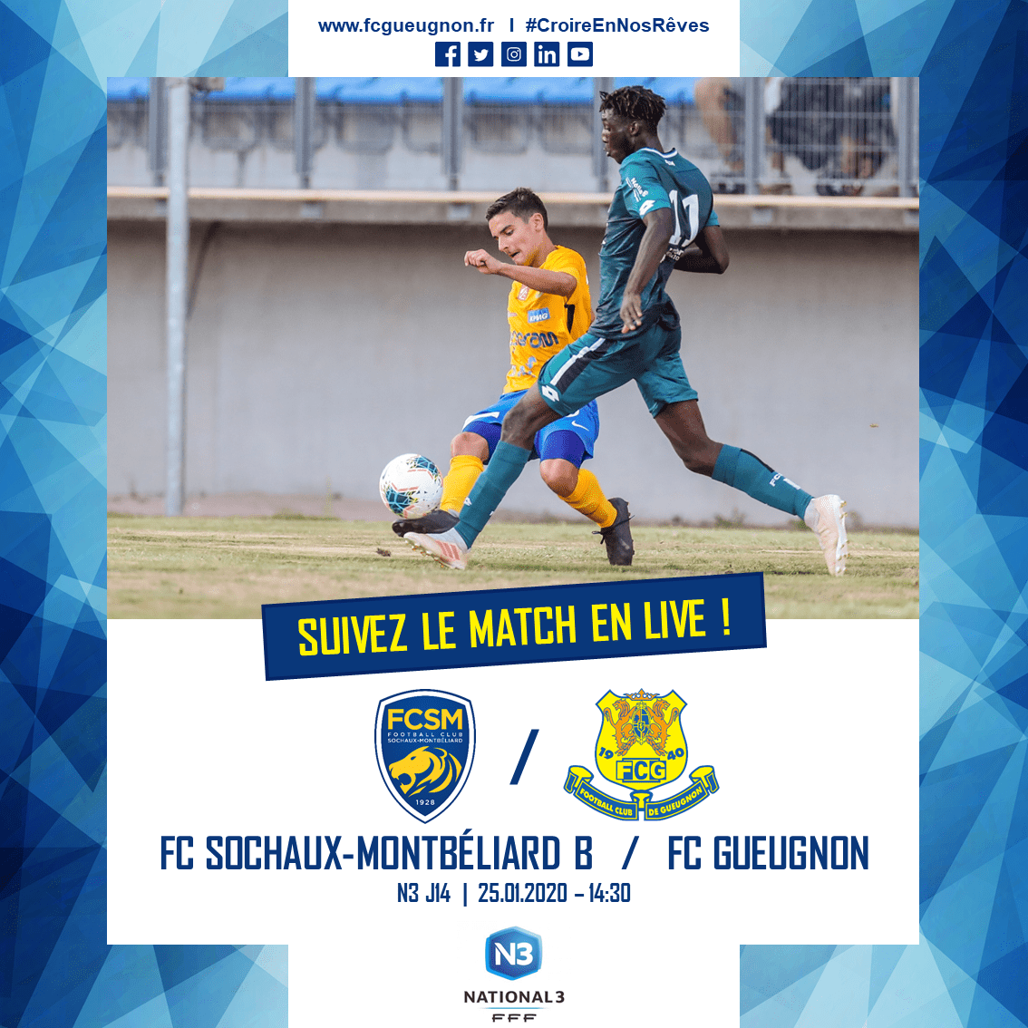 pour suivre cette 14ème journée de N3 BFC entre le FC Sochaux Montbeliard B et le FC Gueugnon