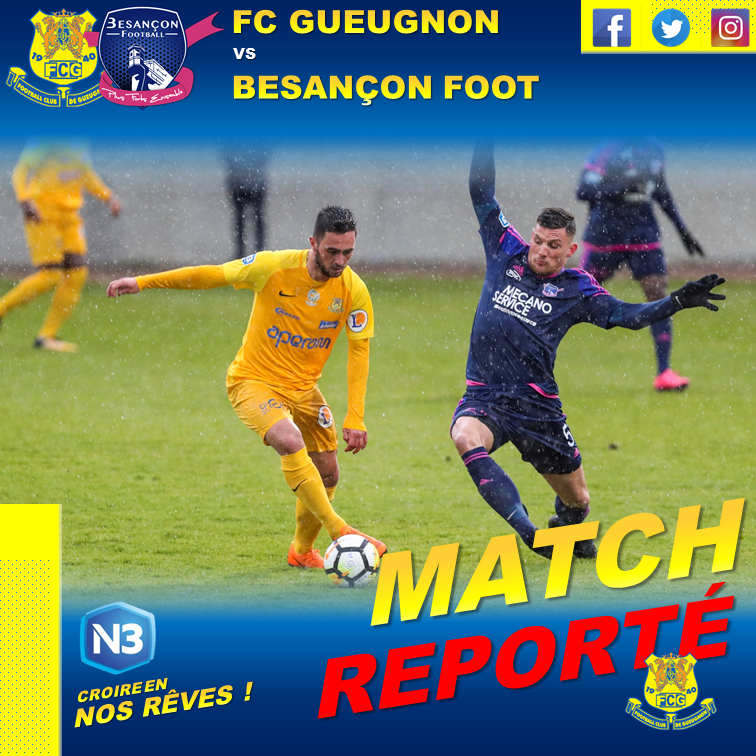 En début d’après-midi, la Ligue Bourgogne Franche-Comté de Football a pris la décision d’annuler l’ensemble des rencontres du weekend des 02 et 03 Février 2019. Ainsi, le match prévu ce samedi face à Besançon Foot est reporté à une date ultérieure.