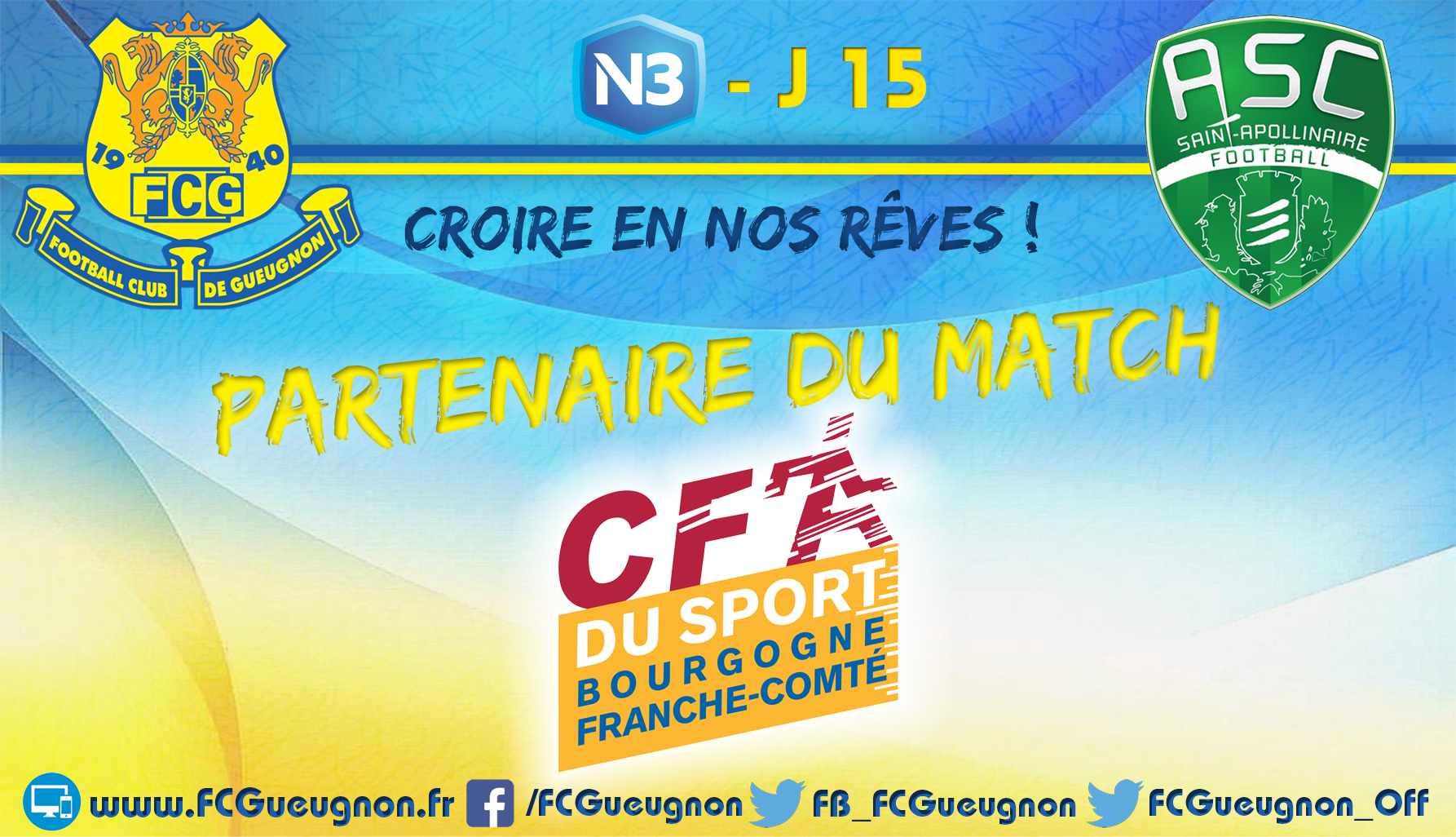 Ce samedi 13 Janvier, à l’occasion de la 15ème journée de championnat, le FC Gueugnon reçoit l’ASC Saint-Apollinaire. Lors de cette rencontre, un focus sera fait sur l’apprentissage dans les métiers du sport et du football. Dans ce cadre, le CFA du Sport de Bourgogne Franche-Comté a décidé d’apporter son soutien au club en offrant le ballon du match !