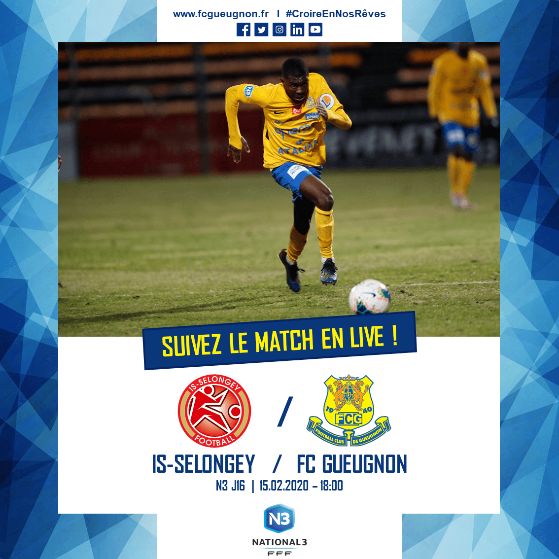pour suivre cette 16ème journée de N3 BFC entre Is Selongey et le FC Gueugnon