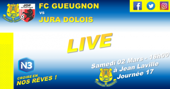 >> Live N3 J17 – FC Gueugnon v/s Jura Dolois : http://bit.ly/N3J17JDF1819