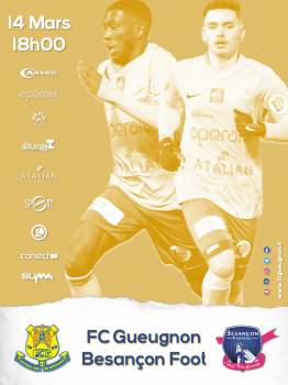 Ce samedi 14 mars, les Jaunes et Bleus qui occupent la 2e place du championnat recevront le 3e Besançon Foot, qui pointe à 1 point de nos forgerons !