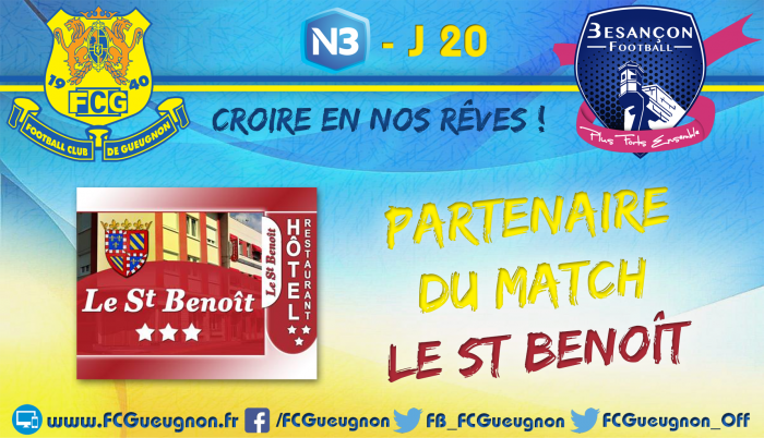 Gilles Perny, gérant de l’Hôtel Restaurant le St Benoit offrira le « ballon du match » et donnera le coup d’envoi de cette 20e journée de National 3 ce samedi 31/03 à 18h00 contre Besançon Foot.