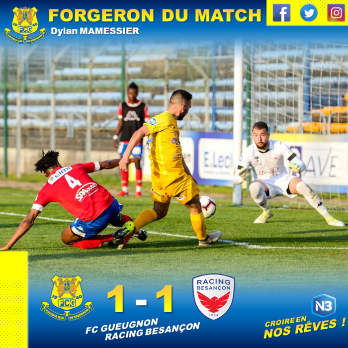 (MAJ le 23/04 à 18h00) Bravo à Dylan MAMESSIER que vous avez désigné forgeron du match contre le Racing Besançon