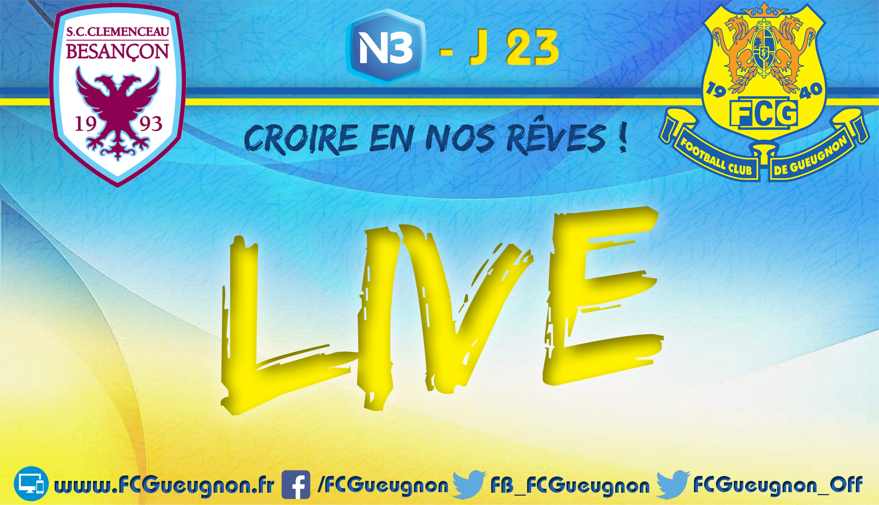 >> Live N3 J23 – Clémenceau Besançon v/s FC Gueugnon : http://bit.ly/N3J23Clemenceau1718