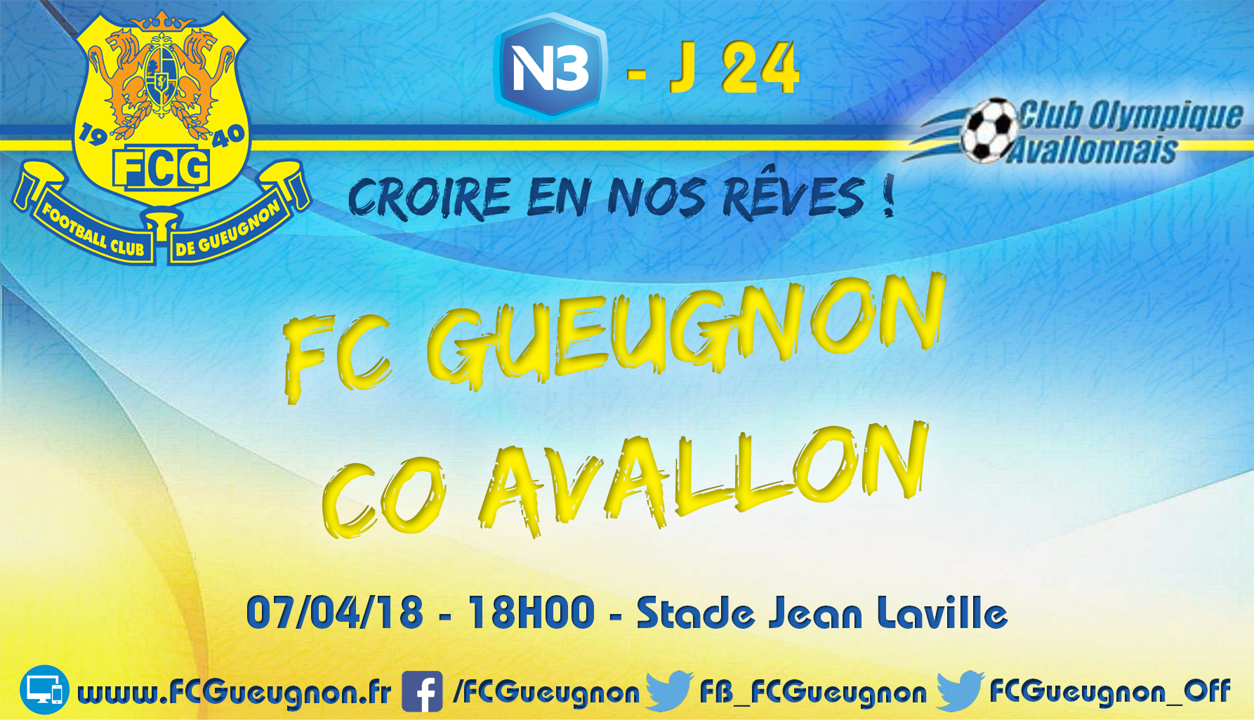 Le FC GUEUGNON s’est bien repris après sa déconvenue contre le Racing Besançon en battant depuis Clémenceau Besançon (1-6), puis Besançon Foot à Jean Laville après une partie bien maîtrisée (2-0). Actuelle 2ème meilleure attaque du championnat avec 44 buts, l’équipe peut compter sur ses différents buteurs avec Franck Revuelta (13 buts), Lamine Soumah (9 buts) et Steeven Harrison (8 buts) ! Le tout encadré par des hommes d’expérience et aussi une profondeur au niveau du banc de touche. Il reste désormais sept rencontres à disputer pour les jaunes et bleus dont quatre à domicile dont celui contre Avallon. Il est important déjà de bien négocier cette rencontre avant d’affronter quatre équipes de tête au classement ! Le FCG est actuellement 5e avec 37 points, soit 11 victoires, 4 nuls et 6 défaites et veut continuer à se mêler au haut du tableau jusqu’au bout ! Philippe Correia pourra compter sur un effectif presque au complet puisque seul Clément Coronas sera absent. De bon augure avant d’affronter cette solide équipe.