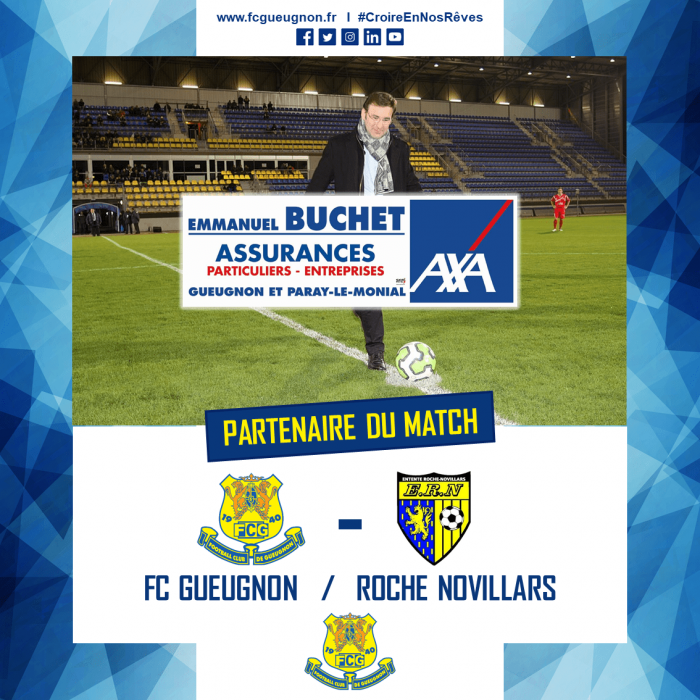 Cette saison, les agences AXA tenues par Emmanuel BUCHET offrent le « ballon du match » lors de la rencontre de ce samedi 05 Octobre, face à l’Entente Roche-Novillars.