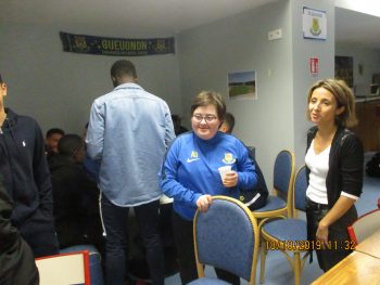 Le groupe National 3 recevait au Stade Jean Laville, 6 jeunes des Papillons Blancs, accompagnés de leurs éducateurs. Cette matinée de rencontre fut une réussite sur le plan humain. En effet, nos joueurs ont passé sans difficulté la barrière du handicap et les échanges furent très constructifs.