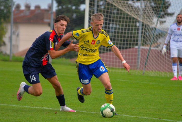Et il ne fallait pas arriver en retard à ce match puisque les locaux s’illustrent en premier en ouvrant la marque dès la 2e minute de jeu ! Les forgerons ne se laissent pas impressionner et égalisent grâce à Ronaldinho Magalhaes (3e 1-1) avant de prendre le match en main. Saidou Sam au 6 mètres puis Axel Drouhin de la tête sur corner permettent aux jaunes et bleus de faire le break et de mener par 3 buts à 1 à la mi-temps.