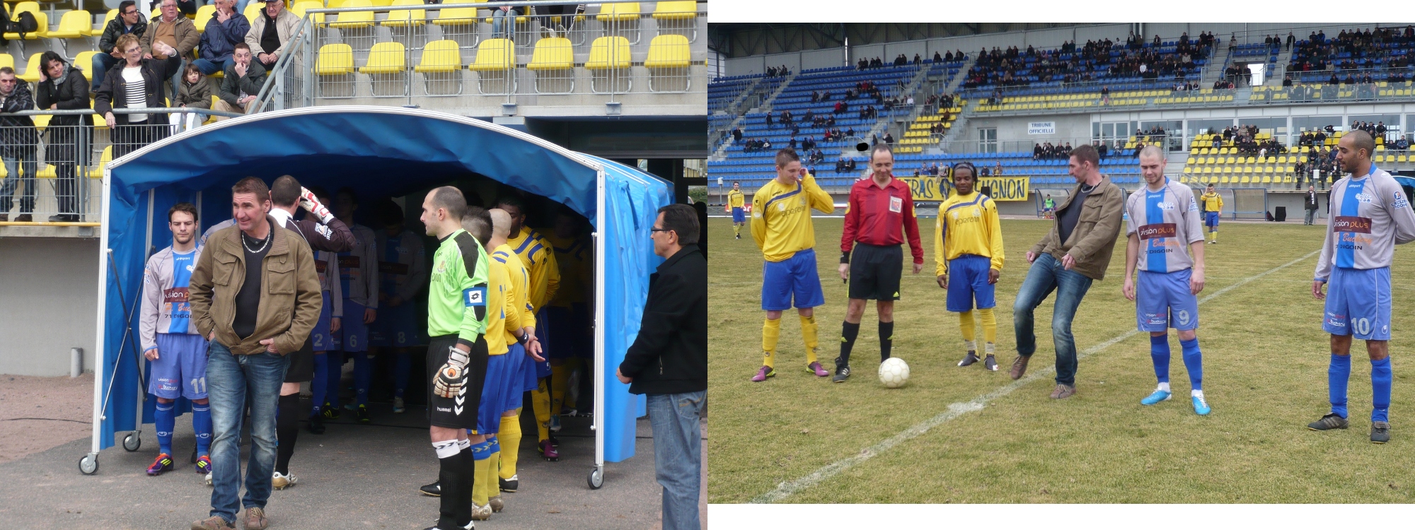 Comme prévu notre ami et maintenant partenaire du Club, Sylvain Barraud, Artisan Carreleur et Spécialisé en maçonnerie responsable de la société "l'As de Carreau" était au rendez vous dimanche dernier au derby contre Digoin pour donnner le coup d'envoi. Au centre, en compagnie des joueurs et arbitres, Sylvain était en terrain de connaissance !!