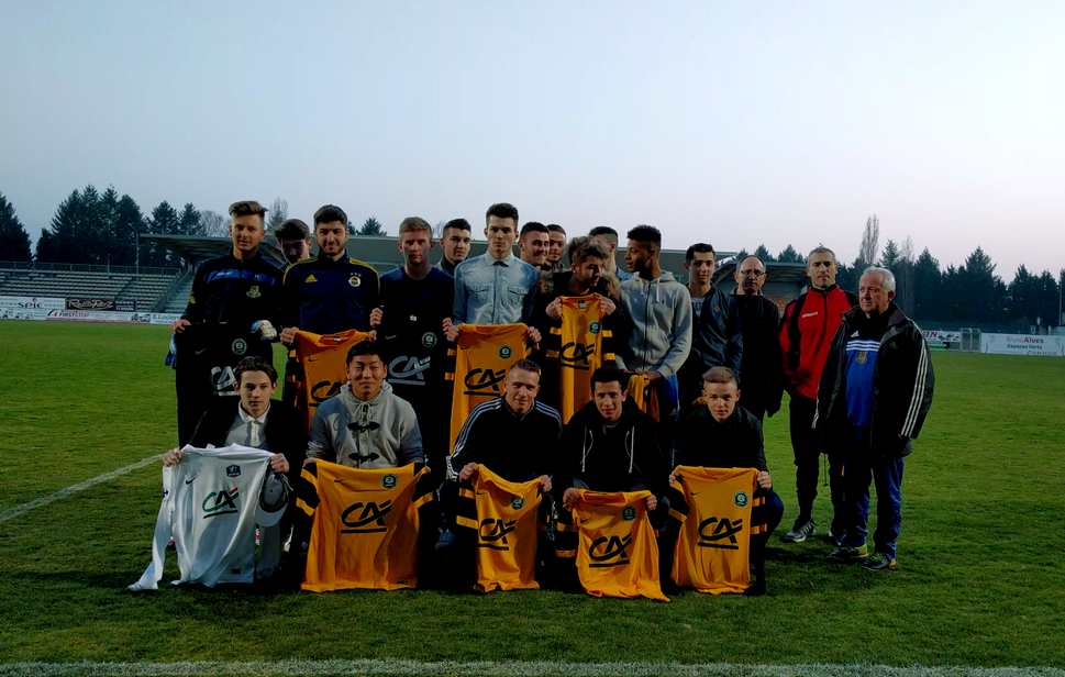 Lors de la mi-temps du dernier match de CFA2 à Jean Laville, nos U19 ont été mis à l’honneur sur le terrain de Jean Laville avec une remise de maillots récompensant pour leur bon parcours en Gambardella.