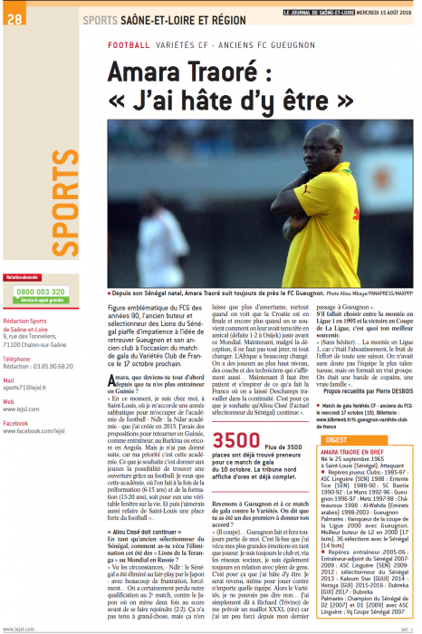 Ce Mercredi, le JSL est allé à la rencontre du goélador forgeron Amara TRAORE qui sera présent le 17 octobre prochain pour la rencontre entre le FC Gueugnon et le Varietes FC.
