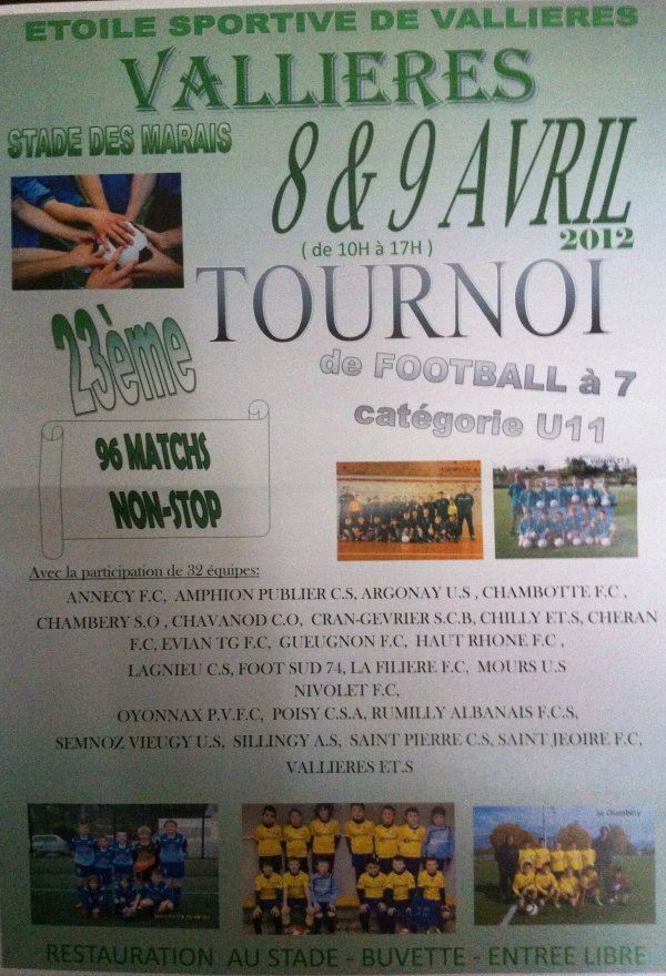 – U10-U11 – 14h30 : Tournoi de Pâques à Vallières – Déplacement en Haute Savoie (Convocations directement au stade VF)